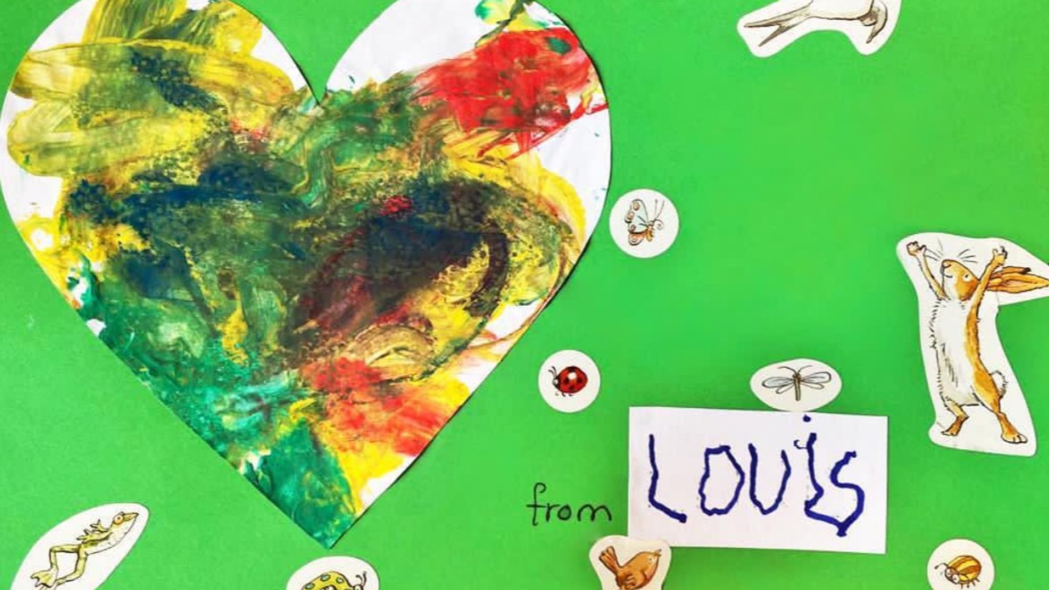 Louis, aged three at the time, painted a big heart with animal stickers to commemorate his grandmother.